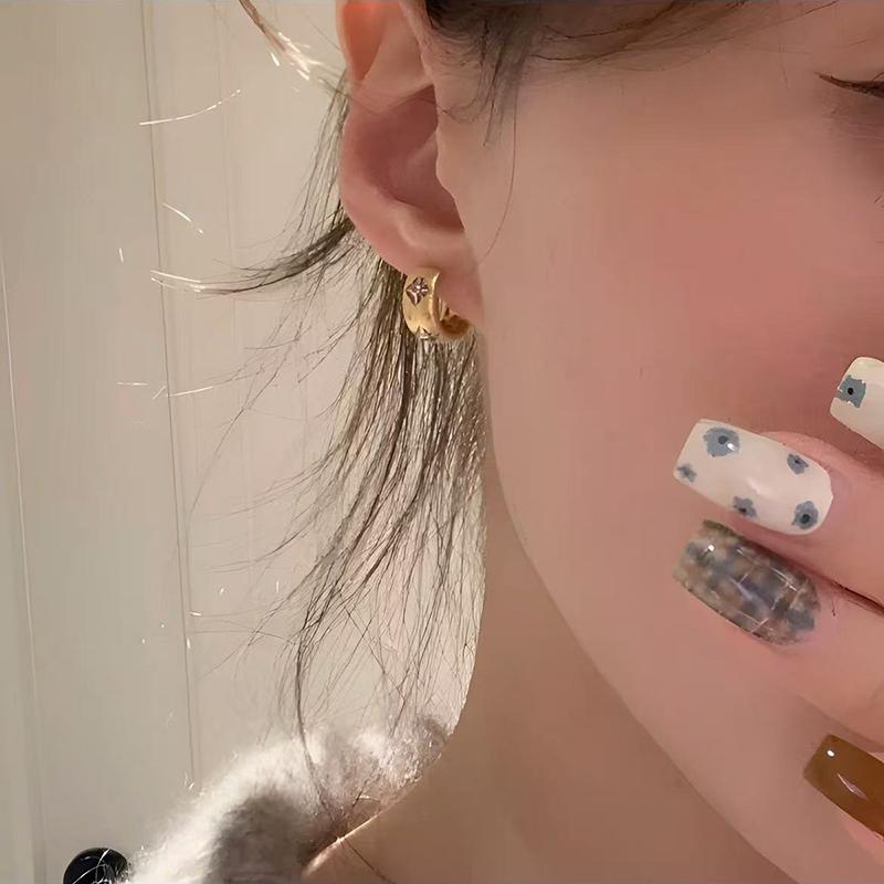 ANENJERY золотые полые серьги-звезды с четырьмя листьями и цветком, женские темпераментные винтажные нишевые дизайнерские ювелирные изделия, подарки золотой