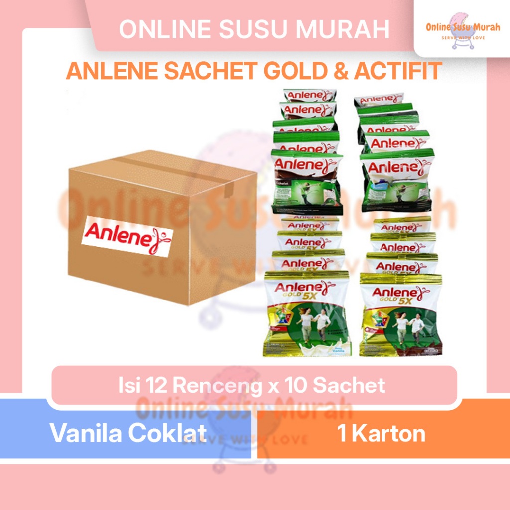 ANLENE SACHET 25GR PAKET 1 KARTON GOLD & ACTIFIT VANILA COKLAT ISI 12 RENCENG X 10 SACHET 25 GR SSSC