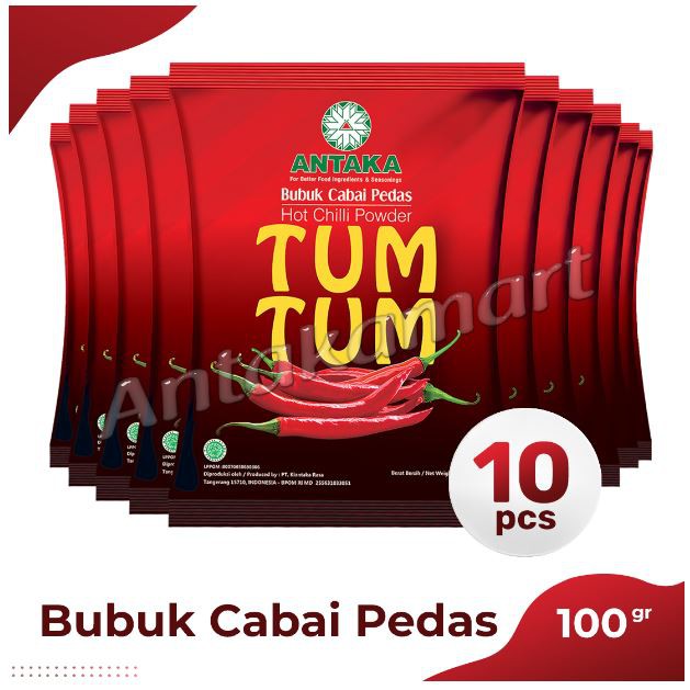 Cabe bubuk Tum-Tum adalah bubuk cabai yang terbuat dari 100% cabai segar yang berkualitas terbaik dengan memiliki rasa pedas alami. Tum tum dapat diaplikasikan untuk semua jenis makanan yang memberikan "RASA PEDAS" untuk mie ayam, mie beras, daging sapi, cumi atau bola ikan, nasi goreng, pasta, sup dan masih banyak lagi. Ini juga dapat digunakan sebagai penambah rasa bagi mereka yang mencintai sensasi kesemutan pedas.