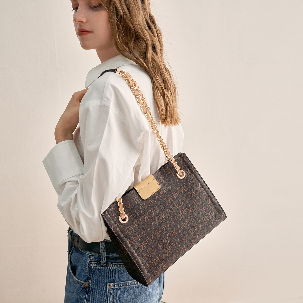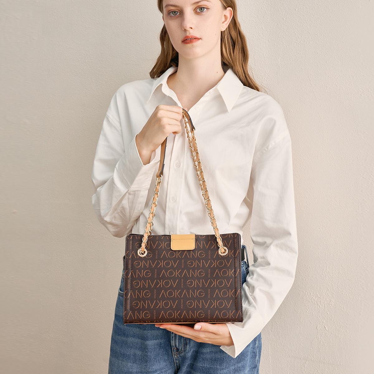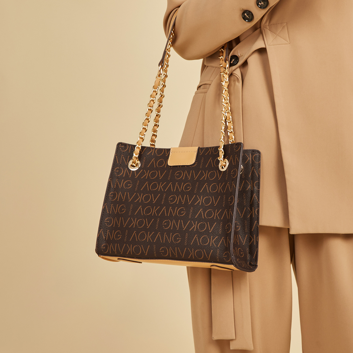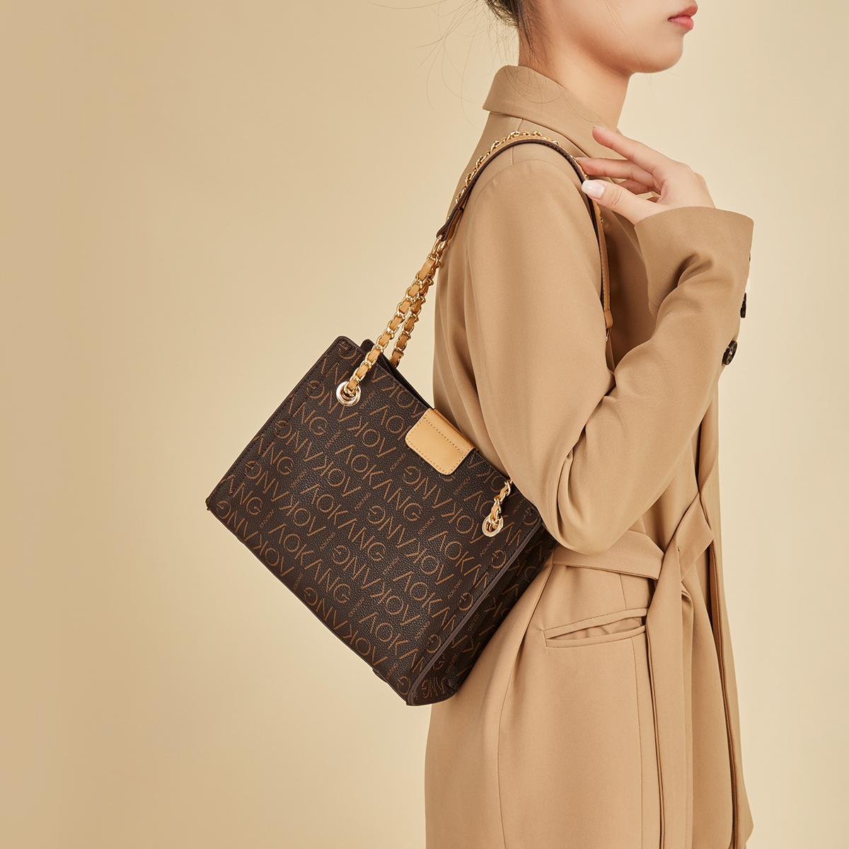 AOKANG Сумка-шоппер из ПВХ для мам через плечо подмышечная женская кофе карамельный кофе классический черный хаки кофе, Ecru 1