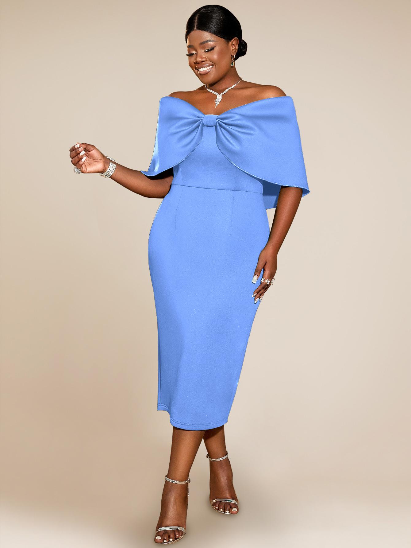 AOMEI вечерние платья для женщин с открытыми плечами и бантом на Рождество, день рождения, облегающие элегантные тонкие платья миди для коктейлей, милые халаты для выпускного вечера L синий