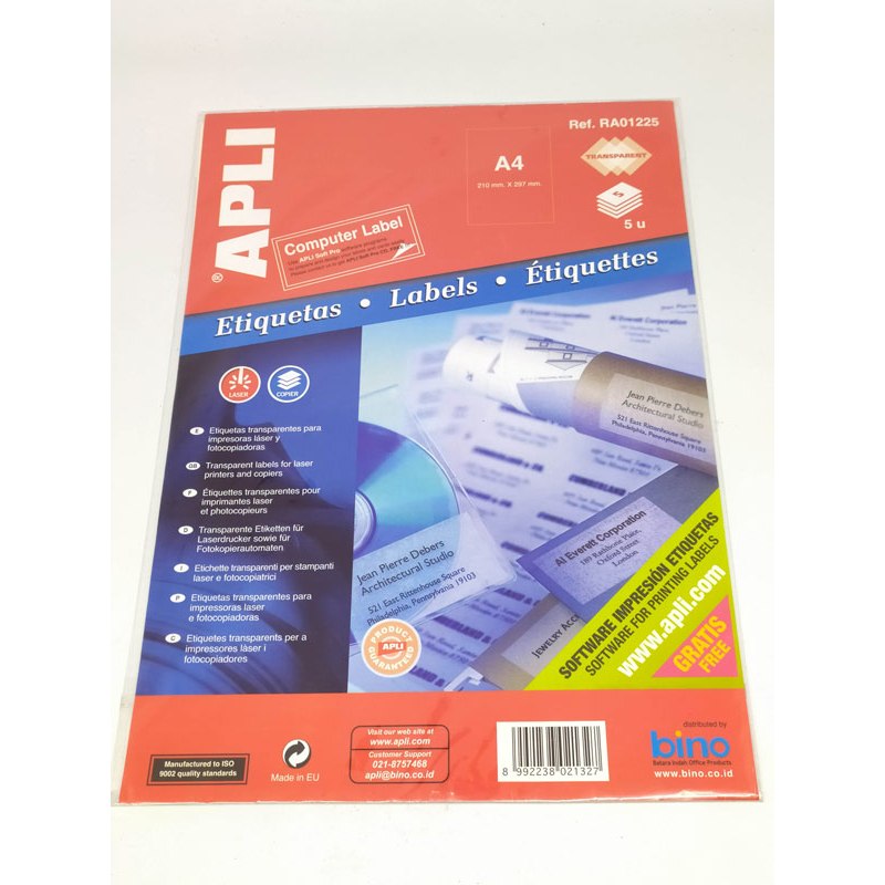 Tipe RA01225 dalam kemasan Blister 1 pack berisi 5 lembar, dalam 1 lembar berisi 1 buah sticker berukuran 210 x 297 mm dengan model square corner (sudut tajam di setiap ujungnya).