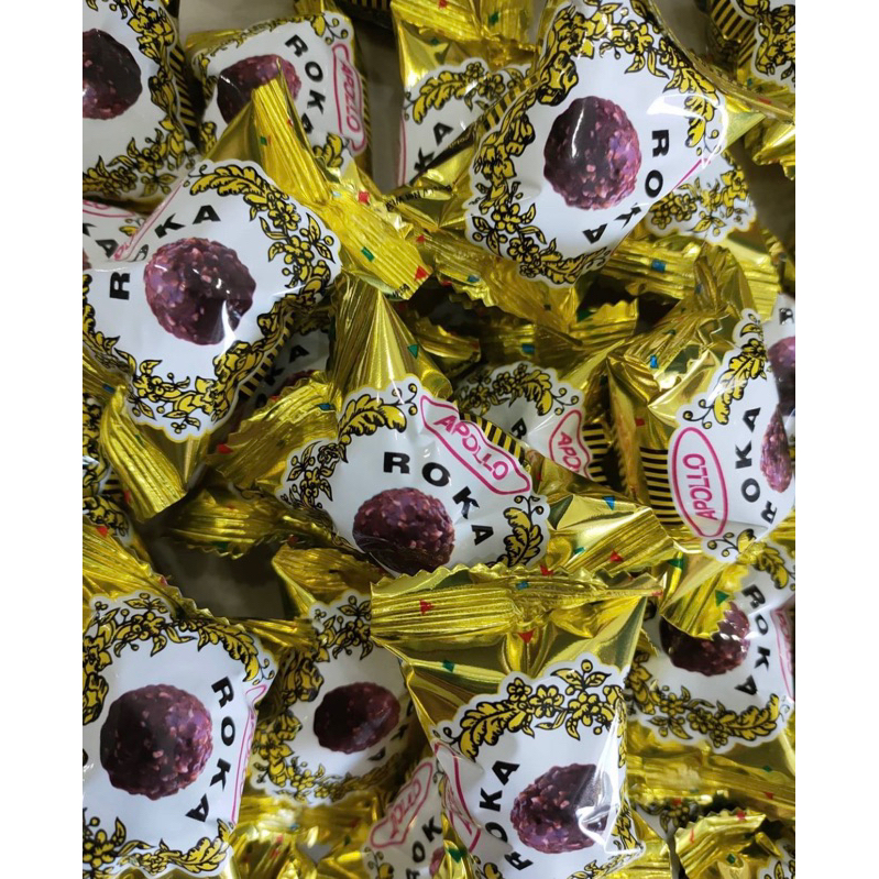 Apollo Roka Wafer Ball Chocolate merupakan wafer renyah berbentuk bola yang diselimuti coklat kacang gurih dengan isian coklat susu yang lezat