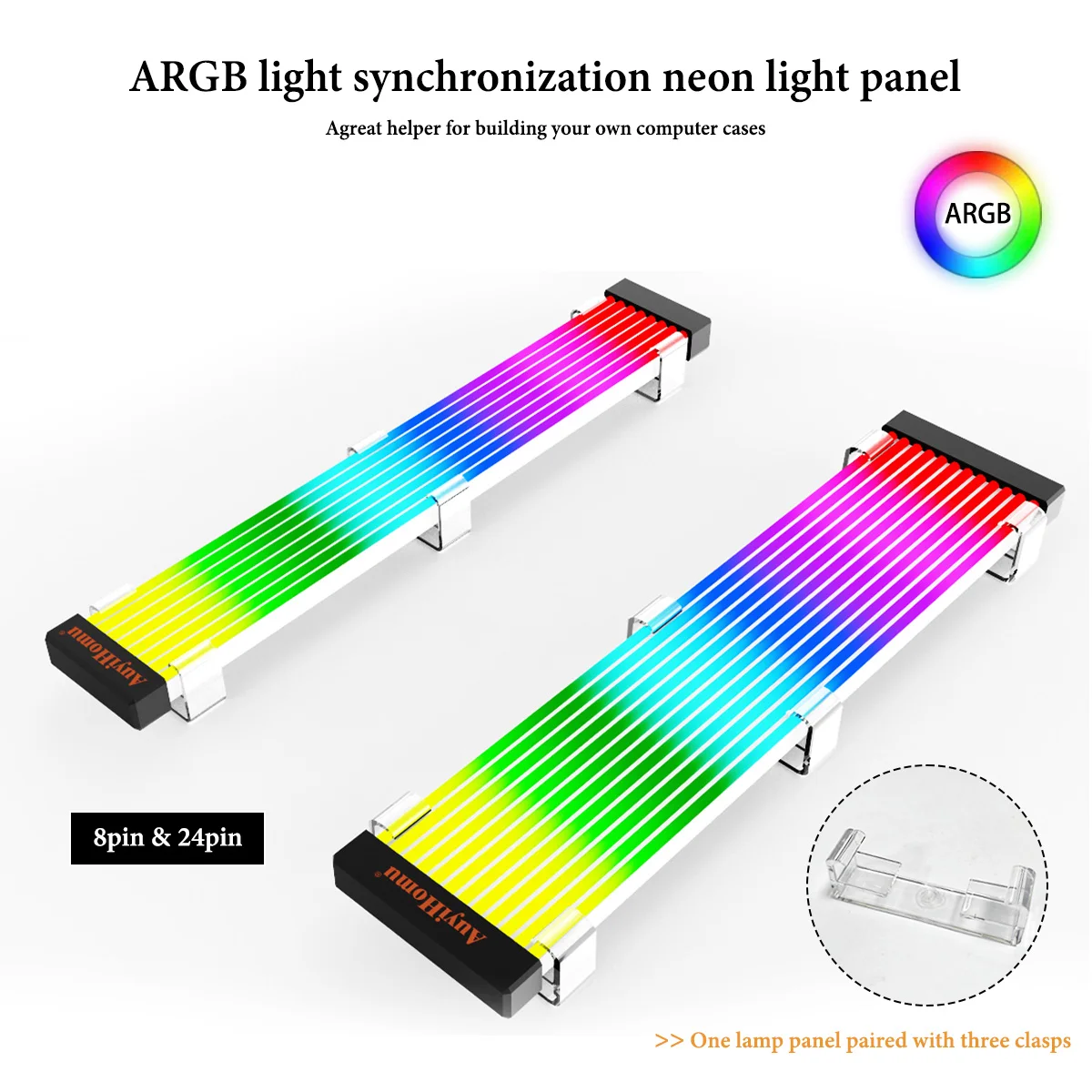 ARGB Neon Light Panel for 8Pin/24Pin PSU Cables - Motherboard Sync LED Strip Kit with Mounting Clips