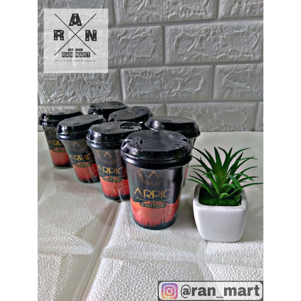 ARPIO COFFEE, bubuk kopi yang terbuat dari biji kopi pilihan. Diproses dengan cara modern sehingga menghasilkan minuman kopi kualitas premium. Kemasan praktis berbentuk gelas dan penyajian yang mudah cocok untuk dibawa kemanapun saat pergi.