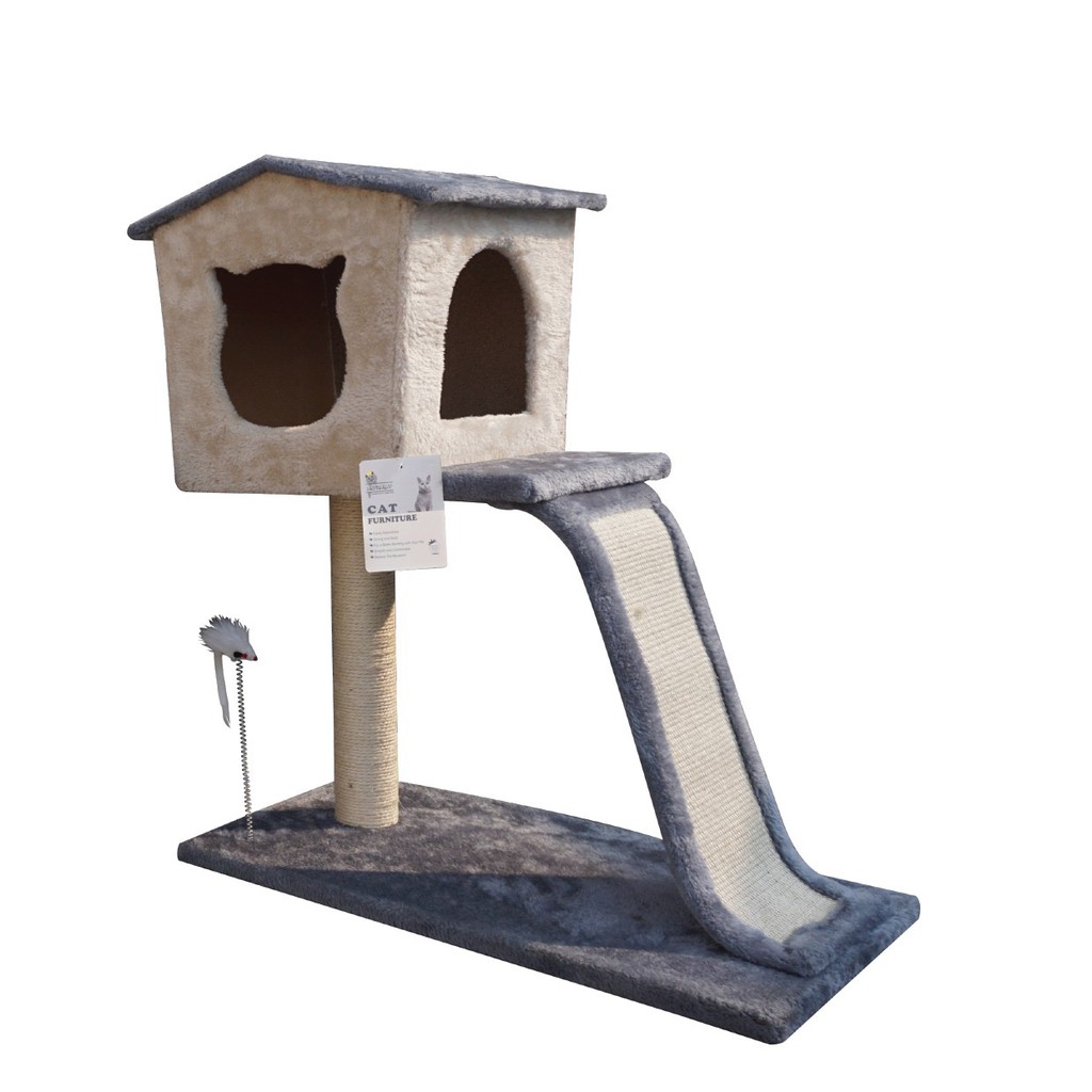 Cat house - Mainan Kucing - Rumah kucingBrand : ArthacatSeries : KateWarna : Grey // BrownUkuran : 60 x 35 x 70 cmBerat Produk : 7.3 kg (7.55 kg termasuk kardus)Sistem : Knock Down (Bongkar Pasang)