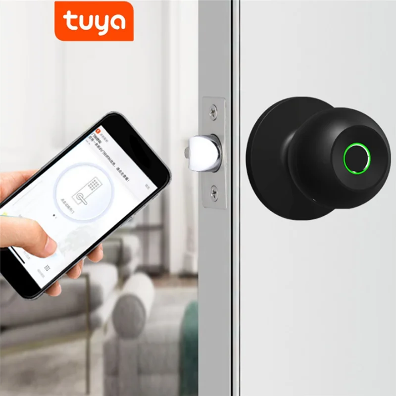 AS60-дверная ручка с отпечатками пальцев, дверной замок, умная дверная ручка, перезаряжаемая с ключами, управление через приложение TUYA для спальни, гардероба