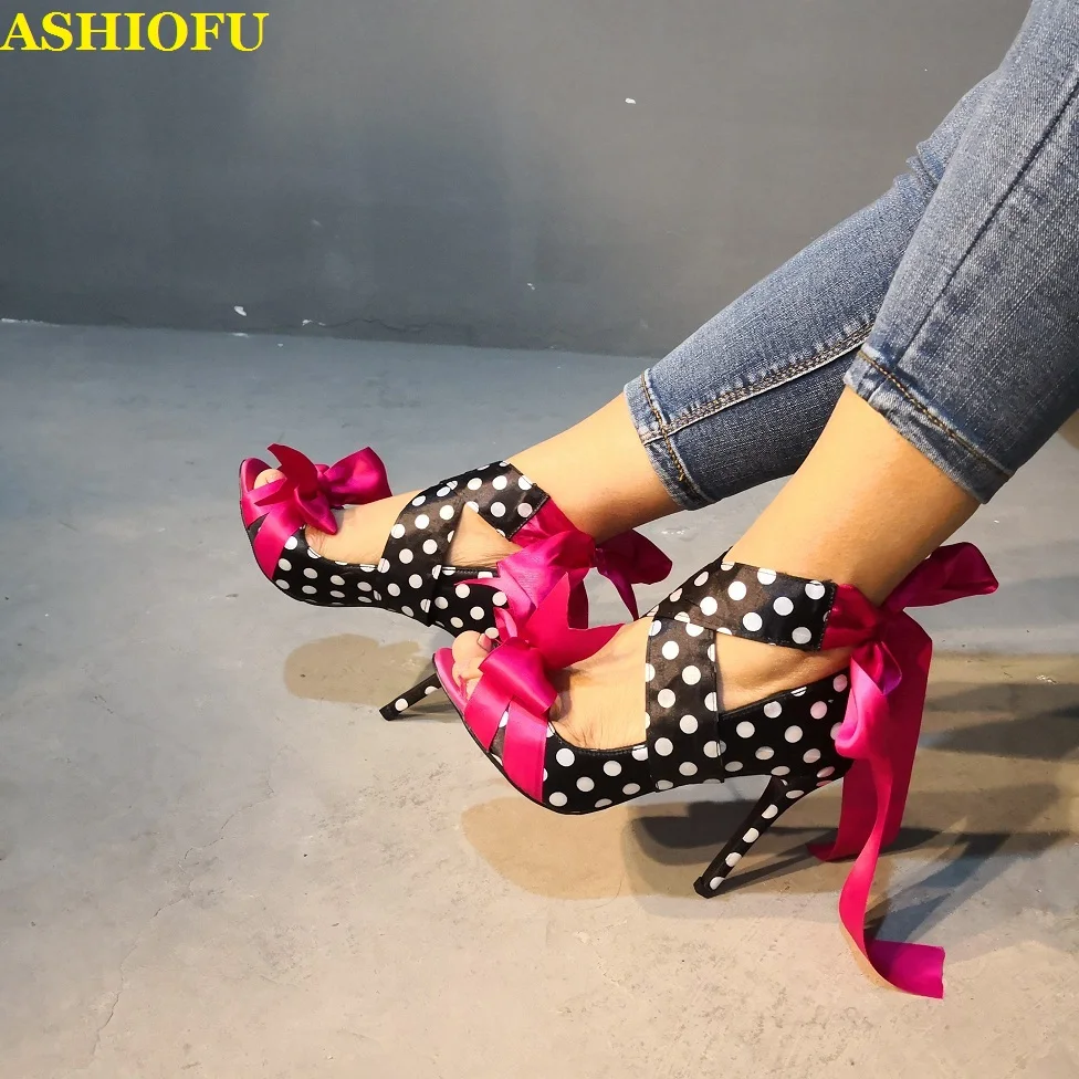 ASHIOFU/новые реальные фотографии; Женские туфли-лодочки на высоком каблуке; Свадебные модельные туфли в белый горошек; Модные вечерние туфли с...