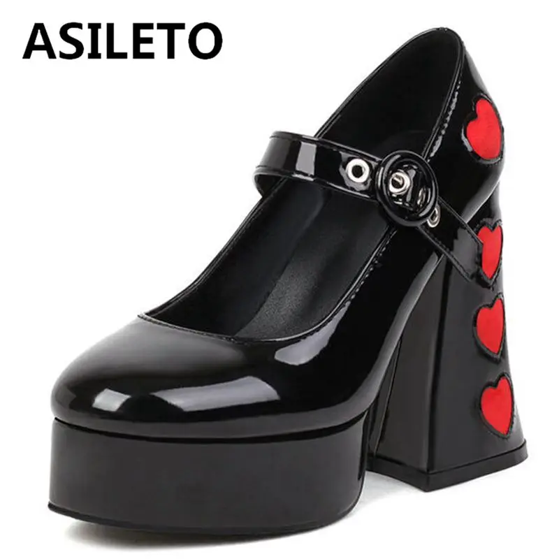 ASILETO лакированные кожаные женские туфли-лодочки с круглым носком 12 см каблук Пряжка ремень в форме сердцвечерние платформа большой размер 35-43 черный красный весна S3591