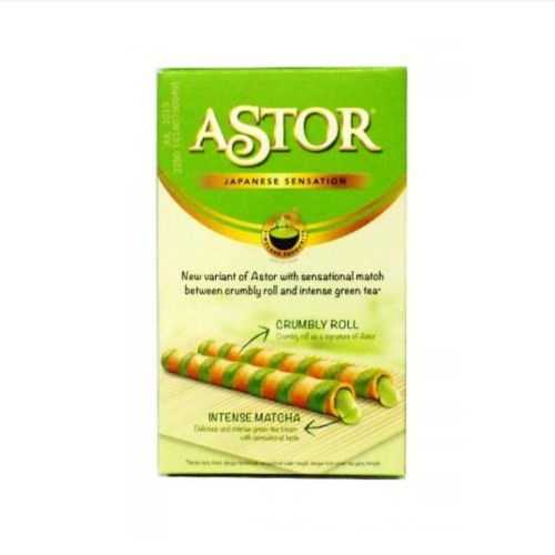 Astor Matcha 40gr merupakan wafer yang berbentuk lonjong dengan motif spiral diluar nya. Tersedia dengan varian matcha yang lezat serta renyah. Cocok untuk disantap sebagai camilan maupun sebagai topping dalam dessert Anda seperti waffle, ice cream maupun pancake.