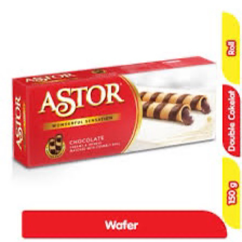 wafer stick yang berbentuk gulungan dengan isian coklat di tengahnya. Astor merupakan salah satu merek wafer roll terkemuka di Indonesia