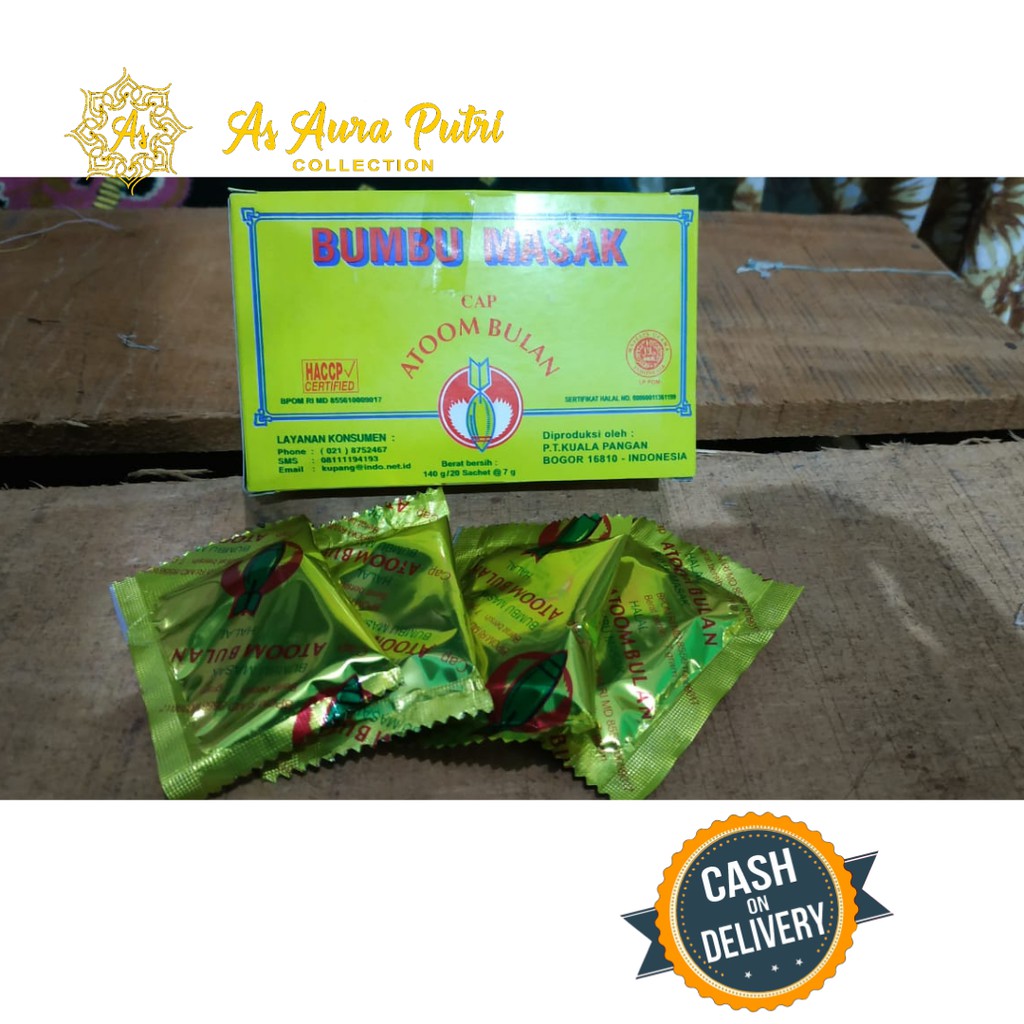 BUMBU PENYEDAP RASA MERK ATOOM BULAN atau Bumbu Masak Cap Atoom Bulan adalah bumbu masak untuk segala macam - macam masakan kuah, masakan gorengan, masakan cah, campuran rasa keripik, kerupuk, cimol, cilok dll.