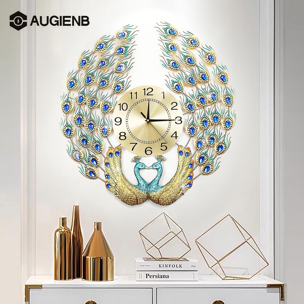 AUGIENB настенные часы, простые современные бесшумные часы с павлином, домашняя гостиная, тихая атмосфера, настенные кварцевые подвесные часы