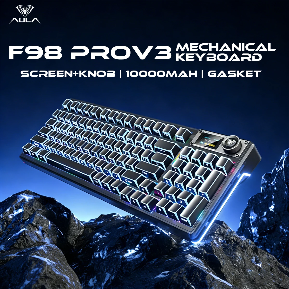 AULA F98 Pro V3 Mechanical Keyboard Custom RGB Backlight Wireless Bluetooth Gaming Shadow Keycaps Keyboard With Screen and Knob