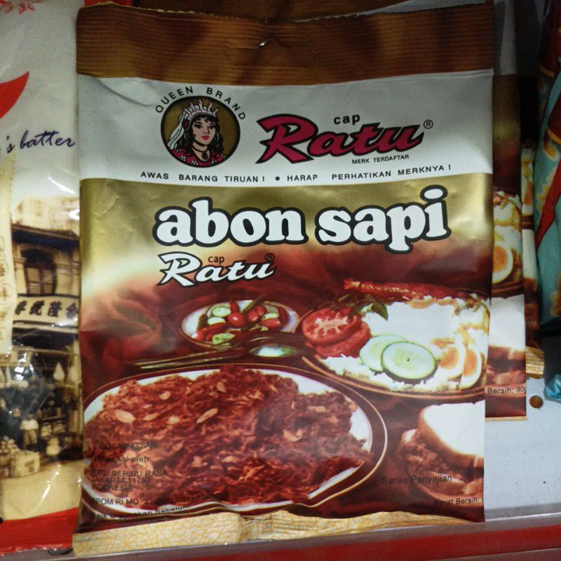 Abon sapi cap ratu terbuat dari daging sapi dan bumbu yang terpilih. untuk lauk lauk dan bisa untuk roti