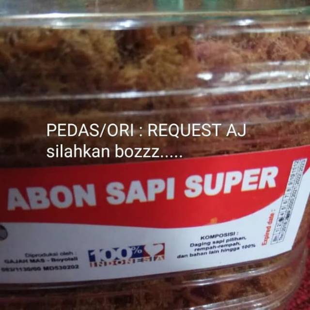Produk halal yg pas untuk teman makan atau bs jg utk ngemil sambil santai.Terkadang dg hal seperti itu, berbagai masalah kehidupan Anda terpecahkan dg solusi yg jitu.Oleh sebab itu maka jangan sampai abon yg lezat lepas dr tangan anda.