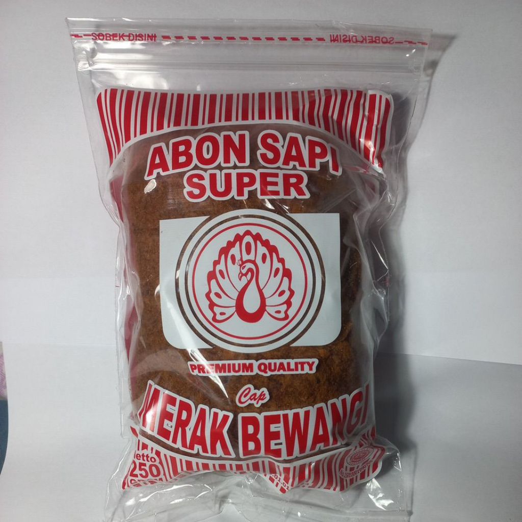 Abon Sapi SUPER Merak Bewangi diolah secara higienis dari bahan yg Halal dengan resep warisan. Praktis untuk lauk tahan lama dan merupakan oleh2 khas dari boyolali. Abon yg dikirim adalah fresh dan produksi terbaru karena dikirim langsung dari produsen