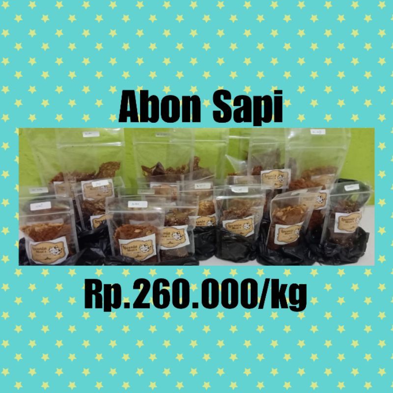 Abon Sapi enak terbuat dari 100% daging sapi asli tidak ada campuran, serat - serat nya daging sapi asli yang membuat abon nya enak dan gurih.