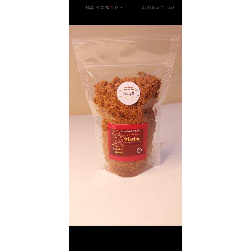 Abon Sapi Marina ini merupakan sajian lezat dengan cita rasa istimewa yang bisa membuat ketagihan. Daging pilihan yang diproses hingga lembut dan serat-serat halus, dikombinasikan dengan bumbu khas yang bikin abon sapi marina ini beda dari yang lain. Nikmati gurihnya Abon Sapi Marina yang kering dan halus. Camilan yang tidak hanya enak untuk ngemil, tapi juga bisa menjadi teman makan nasi atau cemilan spesial di acara apa pun. Abon Sapi Marina cocok dijadikan makanan tambahan pemanis untuk menu-menu seperti nasi rames, nasi kuning, nasi campur, roti abon, roti bakar, dan bakpao isi abon.