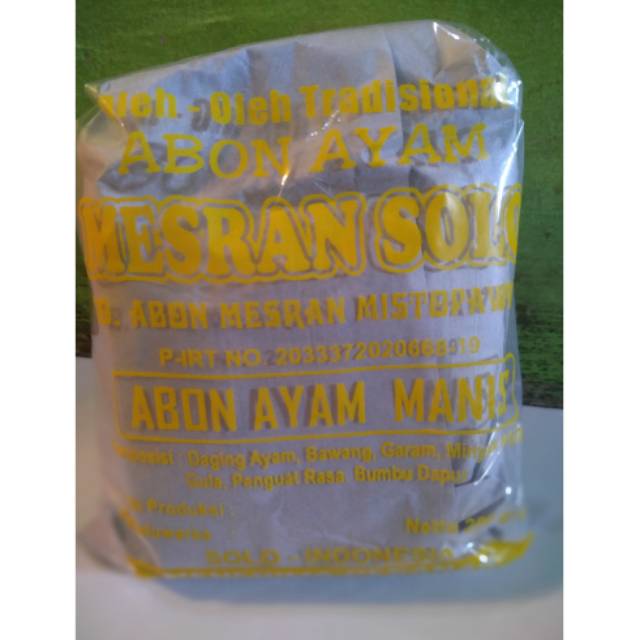 Abon ayam ,adalah olahan ayam dalam bentuk kering. Cocok untuk persediaan lauk disaat males kluar rumah..