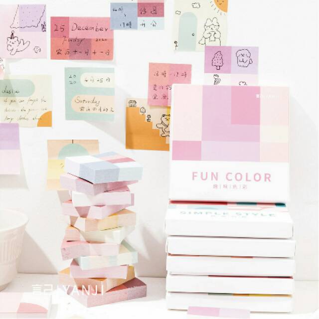 Bentuk-bentuk abstrak dan warna-warni cerah tampil dalam bentuk sticky notes untuk melengkapi jiwa senimu. Koleksi sticky notesyang satu ini dikemas dalam kotak karton yang praktis dan mudah dibawa. Dengan 6 varian, masing-masing varian berisi 4 desain berbeda.