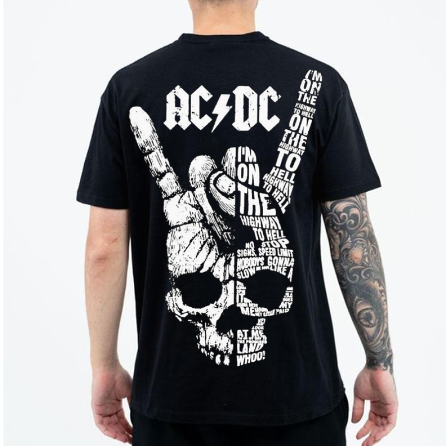 Acdc Retro Skull Letter Splice T-Shirt