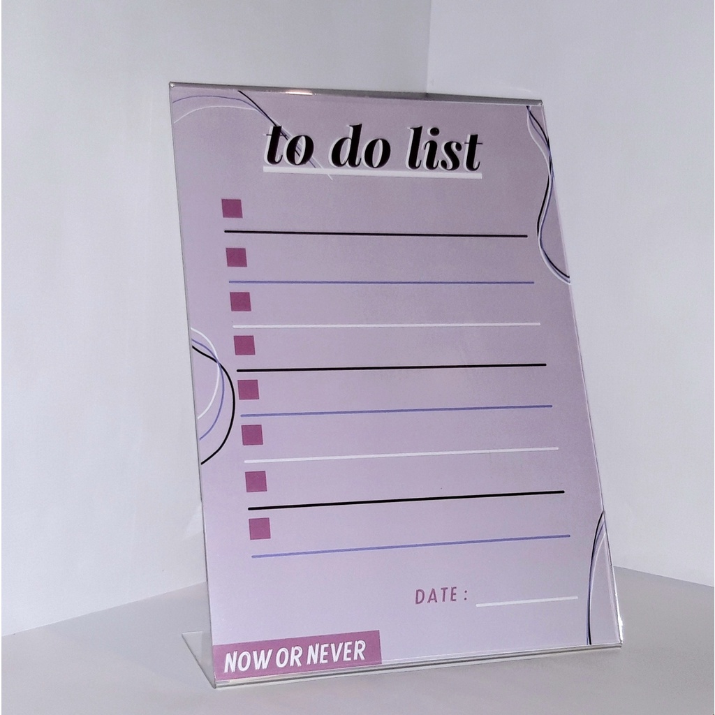 Acrylic Daily Planner hadir sebagai media untuk Anda dapat mencatat semua kegiatan dalam setiap harinya. Dapat dicoret-coret dan dibersihkan kembali sehingga dapat digunakan untuk jangka waktu yang panjang. Setiap pembelian akan mendapatkan 2 buah spidol 'wipe and clean' dengan warna random.