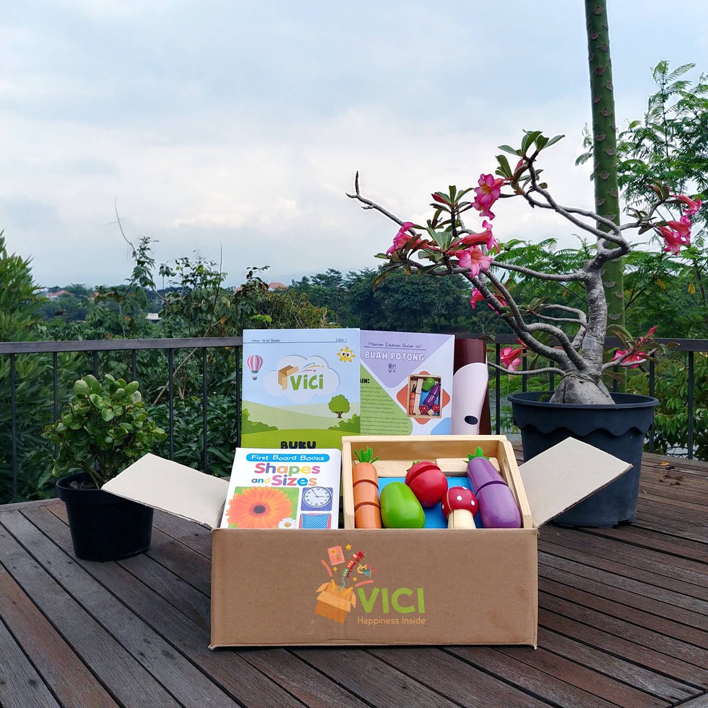 Kebersamaan antara orang tua dengan anak sangatlah penting. Untuk menunjang itu dan memberikan aspek yang sesuai dengan pertumbuhan anak, VICI Activity Box 2+ adalah paket yang tepat untuk anak berumur 24-36 bulan, berisikan: