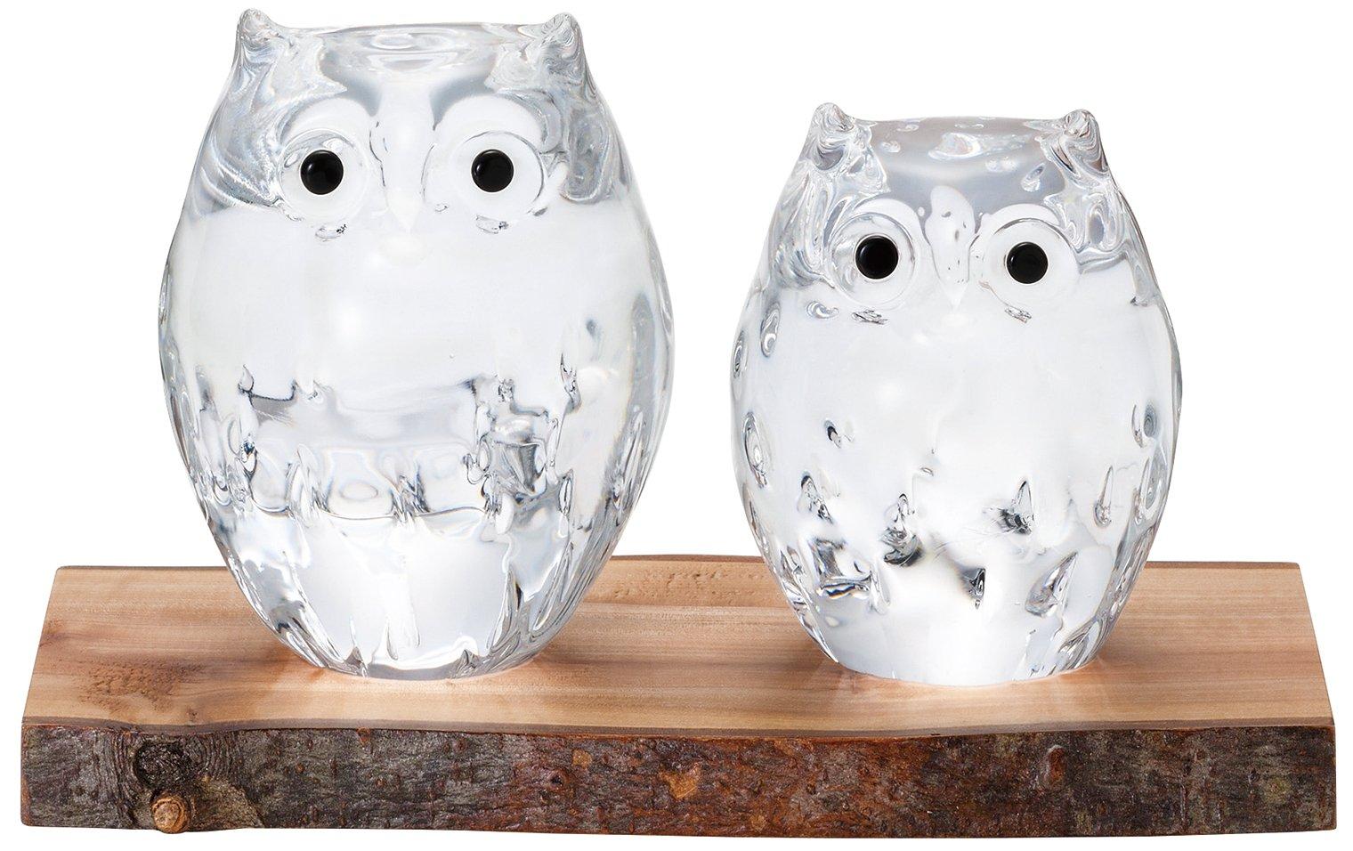 Adelia Традиционное стекло Цугару Сова и яблоко Деревянная подставка, Прозрачный, FS-71523, 21.5 x 16.6 x 12.3 см