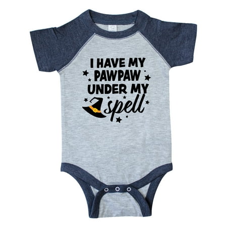 Inktastic I Have My Pawpaw Under My Spell with Cute Witch Hat Gift Baby Boy or Baby Girl Bodysuit