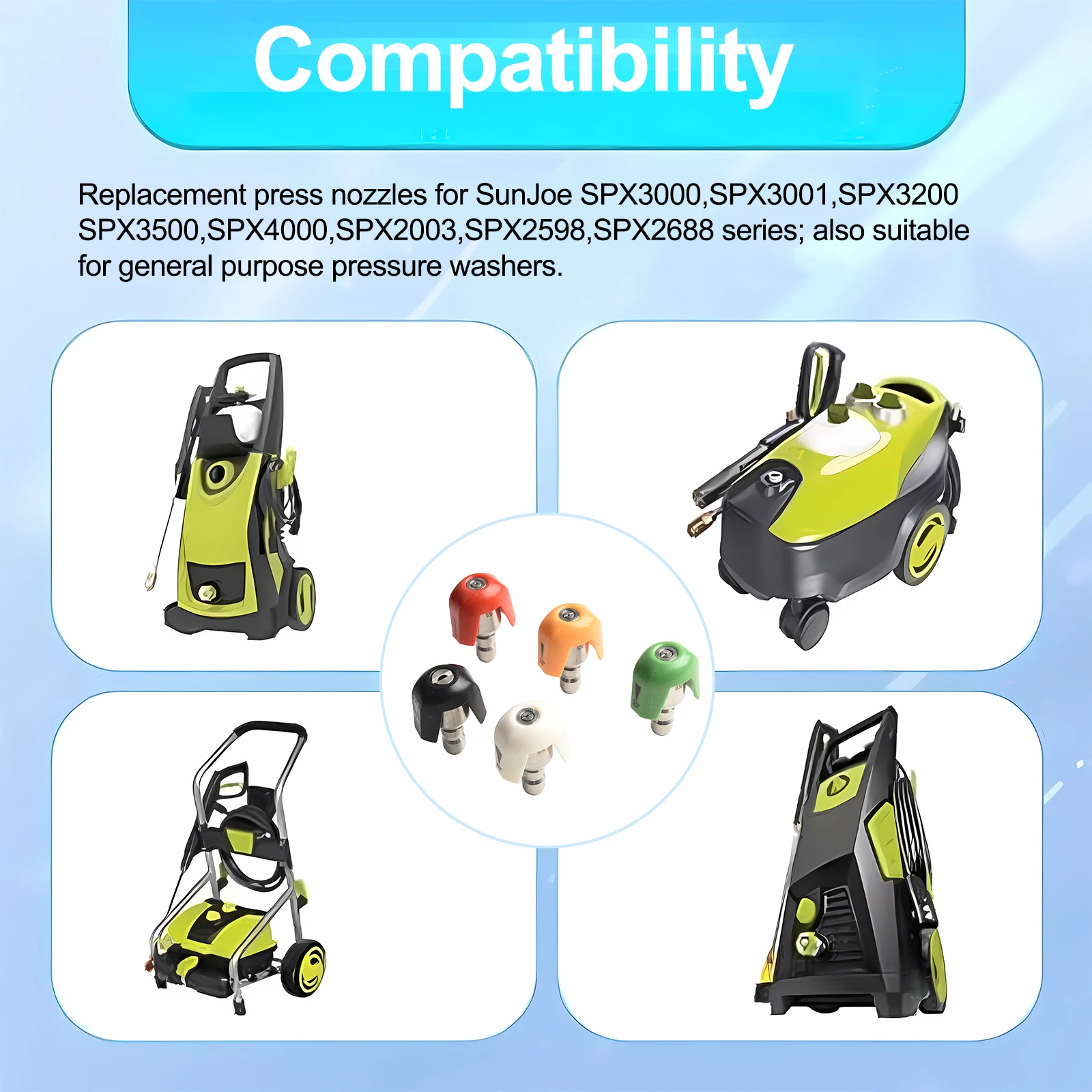 Adjustable Pressure Washer Nozzle Tips Set Degree Rotation Effective Cleaning Performance Number Of Pieces Product Name