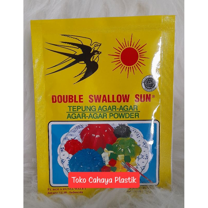 Tuangkan satu bungkus agar-agar double Swallow Sun no.1 ke dalam panci berisi 5 gelas air (1100 cc) dan 160 gram gula (atau menurut selera) lalu Masak hingga mendidih sambil diaduk, tuangkan ke dalam cetakan dan biarkan hingga dingin