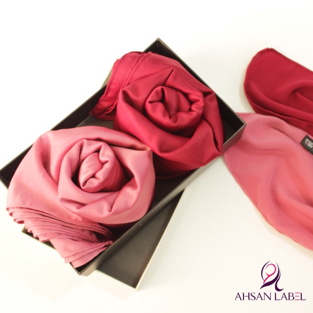 • spesifikasi material: bahannya seperti satin tapi lebih tebal sedikit, jatuh tapi bisa tegak di dahi, tidak terlalu glossy bisa dipakai acara pesta atau formal seperti ke kantor, tidak menerawang mudah di bentuk.