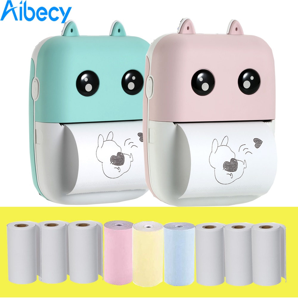 Aibecy Mini Pocket 58mm Wireless Bt Printer 200dpi with 1 Roll Thermal Paper for Printing Photo Memo