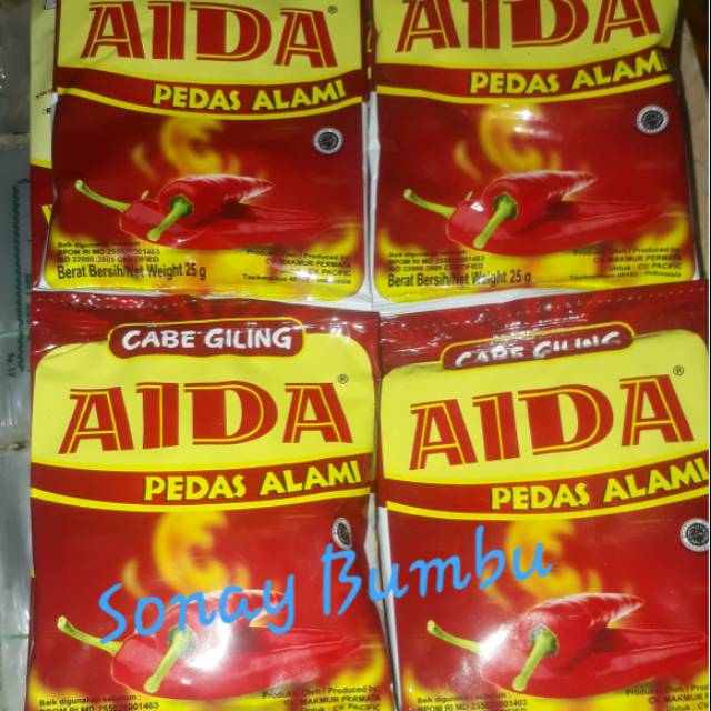 Aida adalah cabe giling halus, bumbu tabur dengan rasa pedas yang nampol, enak untuk tambahan makanan.
