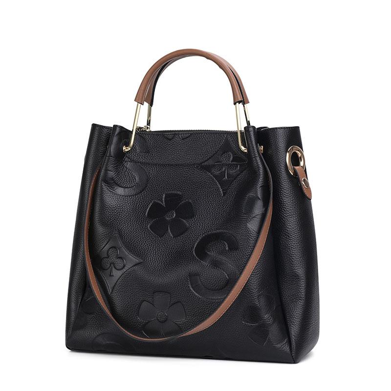 Aidrani Женская сумка из натуральной кожи, модная сумка с цветочным узором, большая вместимость, сумка через плечо из коровьей кожи чёрный