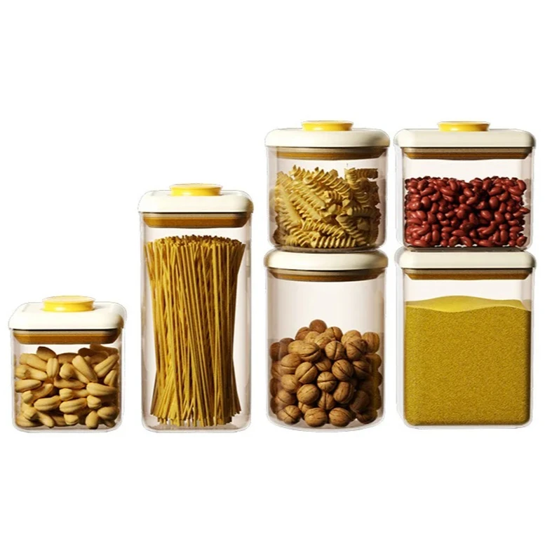 Airtight Food Storage Container, One-Button Seal Transparent Grains Storage Box,Large Capacity Kitchen Pantry Organizer for Rice