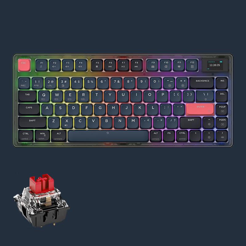 Ajazz AK832Pro RGB 83Keys Wireless BT трехрежимный с низкопрофильным переключателем Outemu для офиса red switch красный/чёрный