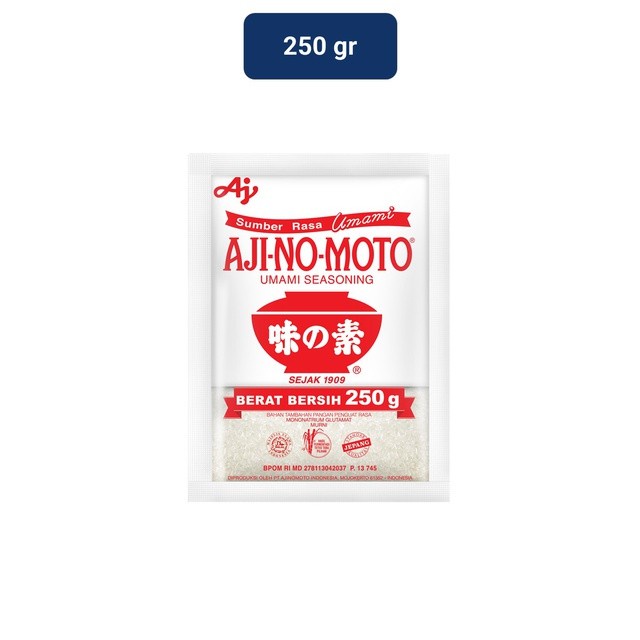 Ajinomoto 250G merupakan penyedap rasa yang dibuat dari bahan alami dengan teknologi Jepang sehingga dapat melezatkan berbagai jenis masakan.