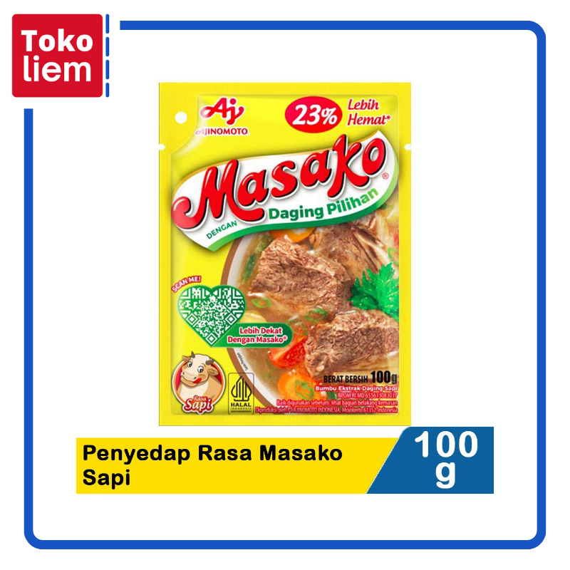 Masako bumbu ekstrak daging sapi, dibuat dengan perpaduan tepat antara daging segar berkualitas, bumbu, dan rempah pilihan yang memberikan rasa dan aroma masakan dari daging asli sama seperti kaldu buatan dirumah. Komposisi : Garam, penguat rasa (mononatrium glutamat, dinatrium inosinat dan guanilat), gula, ekstrak daging sapi, merica, bawang merah, rempah-rempah, pewarna karamel, ekstrak protein kedelai. Other Details : Masako bumbu ekstrak daging sapi, dibuat dengan perpaduan tepat antara daging segar berkualitas, bumbu, dan rempah pilihan yang memberikan rasa dan aroma masakan dari daging asli sama seperti kaldu buatan dirumah.