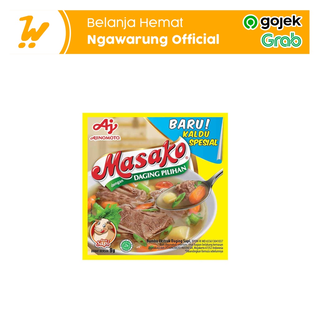 Masako adalah kaldu spesial yang dibuat dari daging ayam dan sapi asli. Ekstrak daging yang mantap dengan rasa asin, gurih, dan seimbang membuat masakan lebih lezat. Kaldu ini diolah dengan teknologi tinggi dan higienis. Proses ini menghasilkan kaldu yang berkualitas sama seperti kaldu buatan rumah.