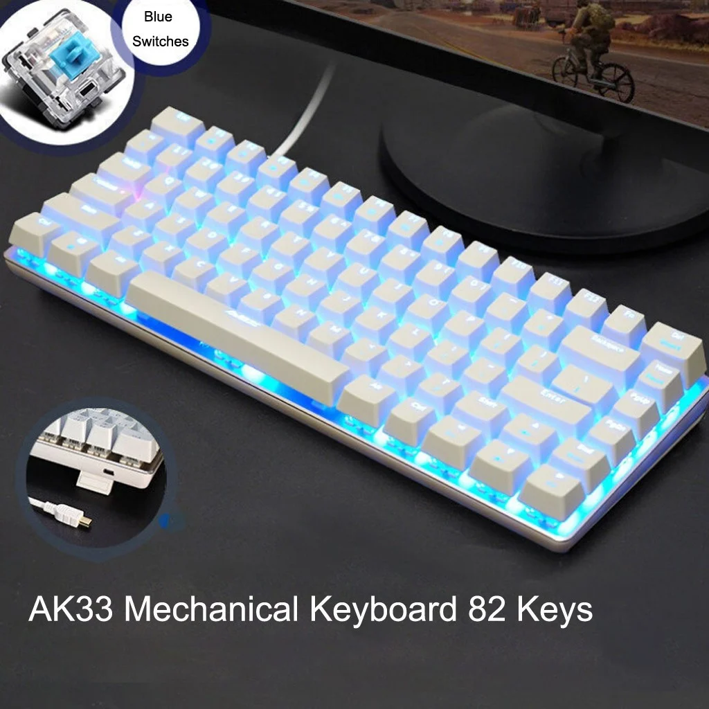 Ak33 игровая консоль механическая клавиатура, периферийные устройства с 82 клавишами кабель задней подсветки, голубые и черные переключатели ...