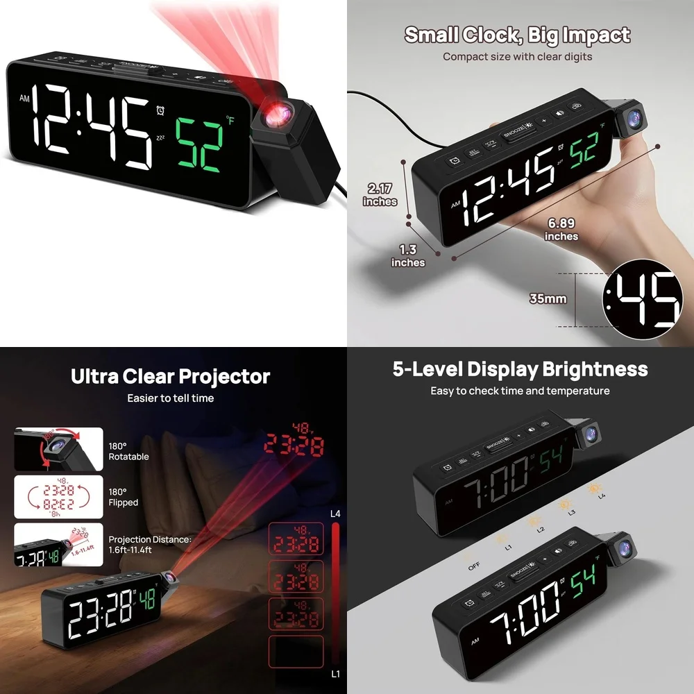 Alarm clockMini Projector Alarm Clock for Bedroom Ceiling Digital Time Display Compact Plug In LED Night Light with Adjustable