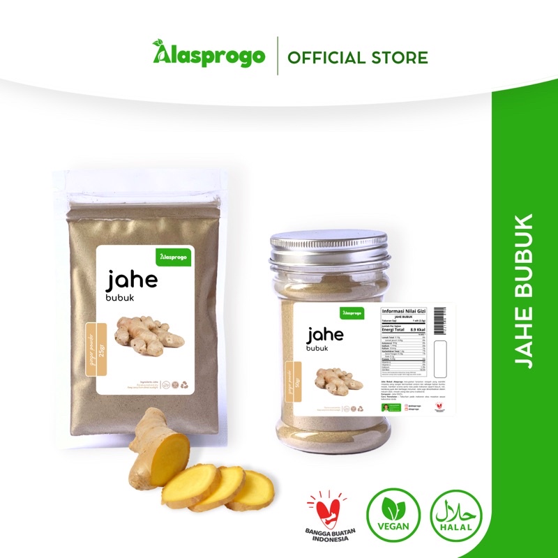 Jahe Bubuk Alasprogo merupakan tanaman rempah yang memiliki rimpang yang sangat bermanfaat antara lain sebagai bahan bumbu masak, memberi aroma serta rasa pada makanan seperti biscuit, roti, kembang gula dan berbagai minuman. Jahe juga dimanfaatkan dalam industri obat, minyak wangi dan jamu tradisional.