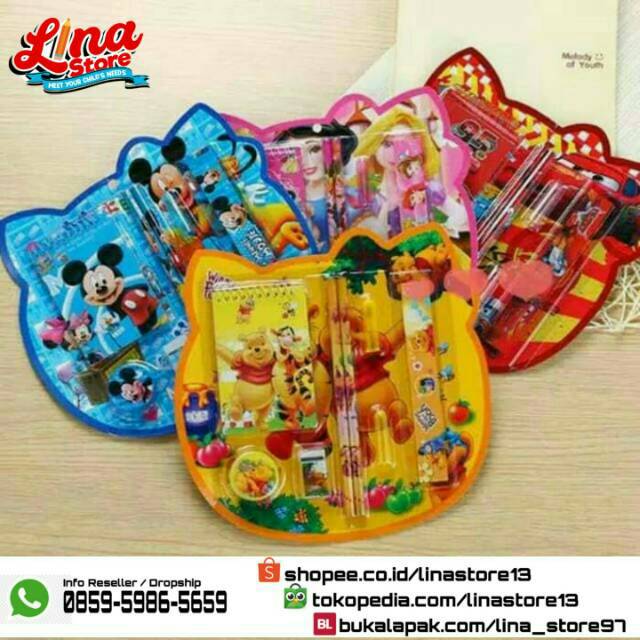 Paket alat tulis dengan notes mini, cocok untuk di berikan sebagai hadiah kepada anak-anak.