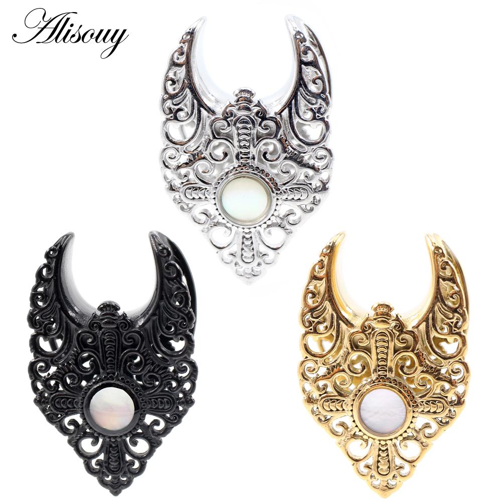 Alisouy 1 шт., полый цветок в виде ракушки из нержавеющей стали, седло для ушей, туннельные пробки, расширитель, носилки, калибры, серьги, пирсинг, украшения для тела