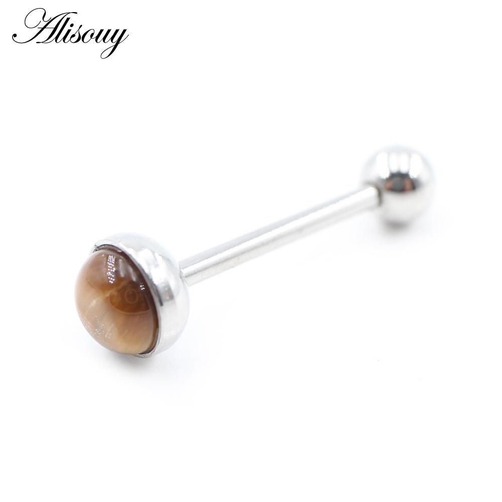 Alisouy 1PC Натуральный камень Нержавеющая сталь Шарик Язык Кольцо Бары Женщины Мужчины Девушки Перегородка Промышленные Штанги Пирсинг Украшения Для Тела