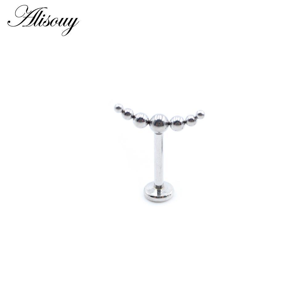 Alisouy 1PC Нержавеющая сталь Кривой Шарик Без Резьбы Ухо Козелок Улитка Лабрет Губа Кольцо Хрящ Серьги-гвоздики Пирсинг Украшения Для Тела 1.2x6mm серебряный