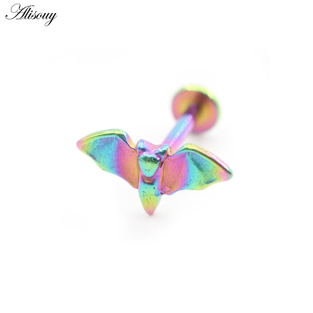 Alisouy 1PC Нержавеющая сталь Летучая мышь Внутренняя резьба Козелок Улитка Лабрет Губные Кольца Серьги Для Пирсинга Хряща Украшения Для Тела разноцветный