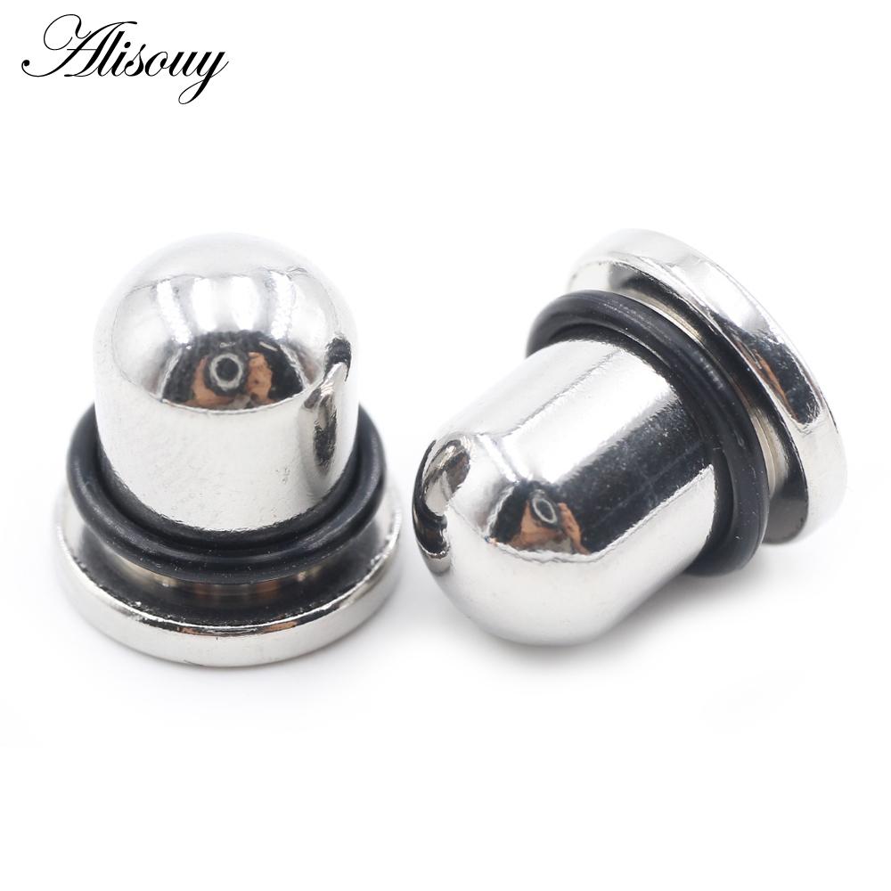 Alisouy 2PC Нержавеющая сталь Твердые Гладкие Цилиндрические Ушные Калибры Конические Заглушки Расширитель Туннеля Растяжитель Серьги Пирсинг Украшения Для Тела 10mm серебряный